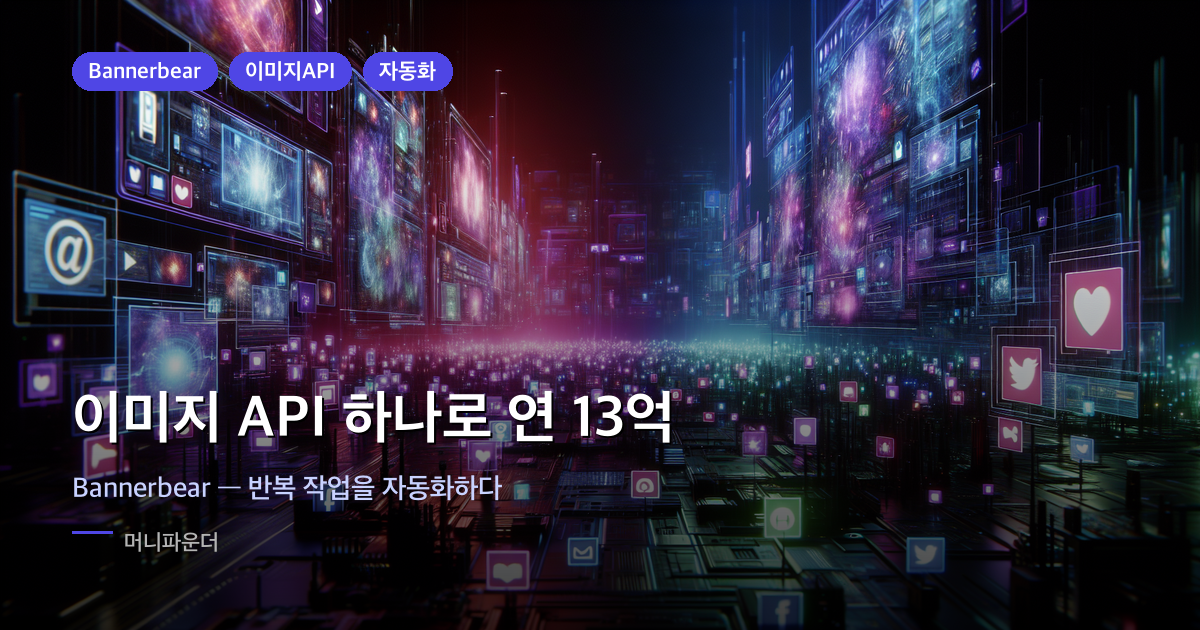 그렇게 Bannerbear(bannerbear.com)가 태어났습니다. 템플릿을 만들어두면, API 호출 하나로 동적 이미지를 자동 생성해주는 도구입니다. e커머스 상품 배너, 블로그 OG 이미지, 소셜 카드 — 전부 자동으로요.