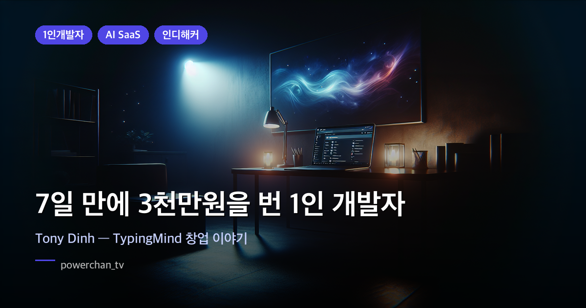 # 1인 개발자 # AI 스타트업 # SaaS 창업 # 인디해커powerchan_tv 2026년 3월 15일 읽는 시간 약 8분2023년 2월. 베트남 개발자 Tony Dinh의 2년짜리 사업이 하루아침에 무너졌습니다.Elon Musk가 Twitter API를 유료화하면서 운영비가 갑자기 월 $42,000으로 폭등한 겁니다. 수개월 전에 거절했던 $500,000 인수 제안이 떠올랐겠죠.그런데 그는 좌절 대신, 노트북을 열었습니다. 7일 후, 새 제품으로 $22,000을 벌어냈습니다. 2026년 현재, 그는 혼자서 월 $137,000(약 2억원)을 법니다.Tony Dinh은 누구인가?Tony Dinh(@tdinh_me)은 베트남 출신의 풀스택 개발자입니다. 고등학교 때부터 Visual Basic 6으로 코..